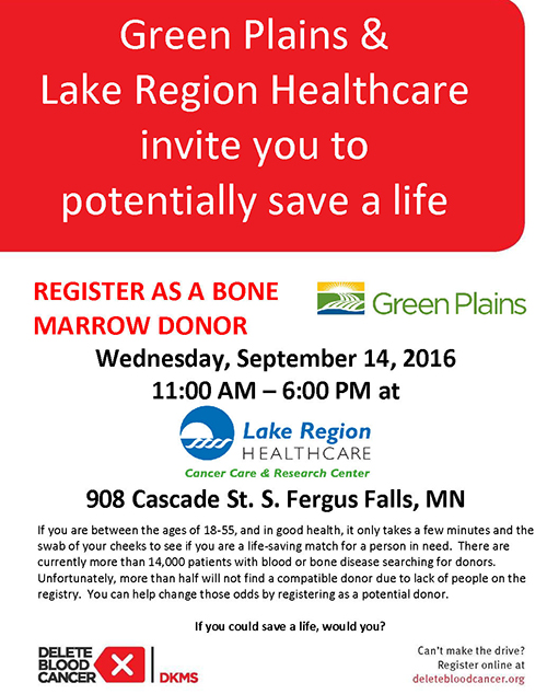 Green Plains, Lake Region Healthcare and Delete Blood Cancer.org
