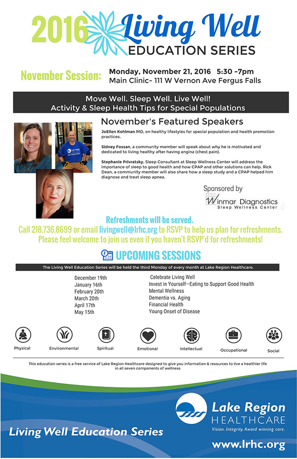 Stephanie Privratsky, Sleep Consultant at Sleep Wellness Center will address the importance of sleep to good health and how CPAP and other solutions can help. Rick Dean, a community member will also share how a sleep study and a CPAP helped him diagnose and treat sleep apnea.